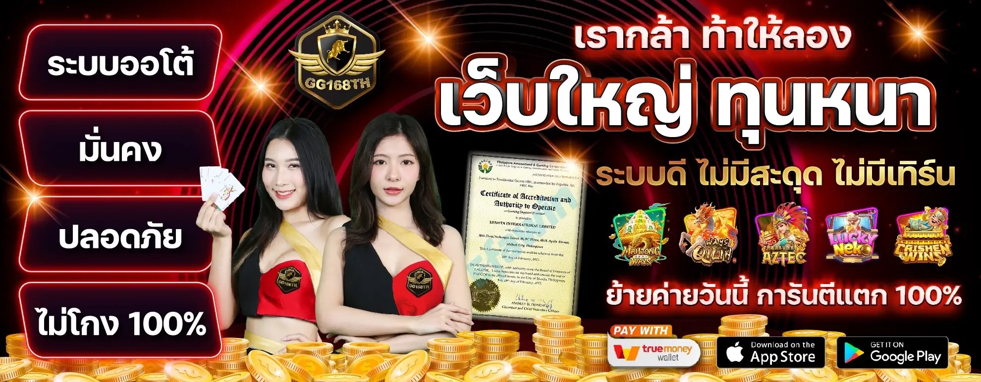 ตอบ : ทุกเกมของเราได้รับลิขสิทธิ์แท้จากค่ายเกมชั้นนำและใช้ระบบสุ่มผลรางวัลที่ได้มาตรฐานสากลทำให้มั่นใจได้ว่าไม่มีการล็อคผลหรือการทุจริตอย่างแน่นอน